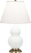 Matte Lily Glazed Ceramic With Antique Natural Brass Finished Accents Small Double Gourd Accent Lamp With Pearl Dupioni Fabric Shade - Our Double Gourd collection features a simple but gracefully curving silhouette. Available in a wide array of vibrant colors and several different base finishes.