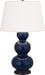 Our Triple Gourd collection features a simple but gracefully curving silhouette. Available in a wide array of vibrant colors and several different base finishes. - Midnight Blue Glazed Ceramic With Deep Patina Bronze Finished Accents Triple Gourd Table Lamp With Pearl Dupioni Fabric Shade