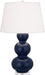 Our Triple Gourd collection features a simple but gracefully curving silhouette. Available in a wide array of vibrant colors and several different base finishes. - Midnight Blue Glazed Ceramic With Lucite Base Triple Gourd Table Lamp With Pearl Dupioni Fabric Shade