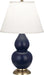Matte Midnight Blue Glazed Ceramic With Antique Brass Finished Accents Small Double Gourd Accent Lamp With Pearl Dupioni Fabric Shade - Our Double Gourd collection features a simple but gracefully curving silhouette. Available in a wide array of vibrant colors and several different base finishes.