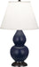 Matte Midnight Blue Glazed Ceramic With Antique Brass Finished Accents Small Double Gourd Accent Lamp With Pearl Dupioni Fabric Shade - Our Double Gourd collection features a simple but gracefully curving silhouette. Available in a wide array of vibrant colors and several different base finishes.