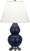 Midnight Blue Glazed Ceramic With Antique Silver Finished Accents Small Double Gourd Accent Lamp With Pearl Dupioni Fabric Shade - Our Double Gourd collection features a simple but gracefully curving silhouette. Available in a wide array of vibrant colors and several different base finishes.