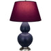 Midnight Blue Glazed Ceramic With Antique Silver Finished Accents Double Gourd Table Lamp With Plum Fabric Shade with Lavender Lining - Our Double Gourd collection features a simple but gracefully curving silhouette. Available in a wide array of vibrant colors and several different base finishes.