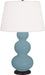 Our Triple Gourd collection features a simple but gracefully curving silhouette. Available in a wide array of vibrant colors and several different base finishes. - Steel Blue Glazed Ceramic With Deep Patina Bronze Finished Accents Triple Gourd Table Lamp With Pearl Dupioni Fabric Shade