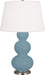 Our Triple Gourd collection features a simple but gracefully curving silhouette. Available in a wide array of vibrant colors and several different base finishes. - Steel Blue Glazed Ceramic With Antique Silver Finished Accents Triple Gourd Table Lamp With Pearl Dupioni Fabric Shade