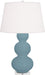 Our Triple Gourd collection features a simple but gracefully curving silhouette. Available in a wide array of vibrant colors and several different base finishes. - Steel Blue Glazed Ceramic With Lucite Base Triple Gourd Table Lamp With Pearl Dupioni Fabric Shade