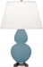 Matte Steel Blue Glazed Ceramic With Antique Silver Finished Accents Double Gourd Table Lamp With Pearl Dupioni Fabric Shade - Our Double Gourd collection features a simple but gracefully curving silhouette. Available in a wide array of vibrant colors and several different base finishes.