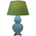 Matte Steel Blue Glazed Ceramic With Antique Silver Finished Accents Double Gourd Table Lamp With Tea Green Fabric Shade with Taupe Lining - Our Double Gourd collection features a simple but gracefully curving silhouette. Available in a wide array of vibrant colors and several different base finishes.