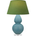 Matte Steel Blue Glazed Ceramic With Lucite Base Double Gourd Table Lamp With Tea Green Fabric Shade With Taupe Lining - Our Double Gourd collection features a simple but gracefully curving silhouette. Available in a wide array of vibrant colors and several different base finishes.