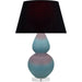 Matte Steel Blue Glazed Ceramic With Lucite Base Double Gourd Table Lamp With Ink Black Fabric Shade with Rose Red Lining - Our Double Gourd collection features a simple but gracefully curving silhouette. Available in a wide array of vibrant colors and several different base finishes.