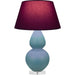 Matte Steel Blue Glazed Ceramic With Lucite Base Double Gourd Table Lamp With Plum Fabric Shade with Lavender Lining - Our Double Gourd collection features a simple but gracefully curving silhouette. Available in a wide array of vibrant colors and several different base finishes.