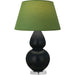 Matte Obsidian Glazed Ceramic With Lucite Base Double Gourd Table Lamp With Tea Green Fabric Shade With Taupe Lining - Our Double Gourd collection features a simple but gracefully curving silhouette. Available in a wide array of vibrant colors and several different base finishes.