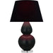 Matte Obsidian Glazed Ceramic With Lucite Base Double Gourd Table Lamp With Ink Black Fabric Shade with Rose Red Lining - Our Double Gourd collection features a simple but gracefully curving silhouette. Available in a wide array of vibrant colors and several different base finishes.