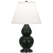 Matte Obsidian Glazed Ceramic With Deep Patina Bronze Finished Accents Small Double Gourd Accent Lamp With Pearl Dupioni Fabric Shade - Our Double Gourd collection features a simple but gracefully curving silhouette. Available in a wide array of vibrant colors and several different base finishes.