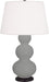 Our Triple Gourd collection features a simple but gracefully curving silhouette. Available in a wide array of vibrant colors and several different base finishes. - Smoky Taupe Glazed Ceramic With Deep Patina Bronze Finished Accents Triple Gourd Table Lamp With Pearl Dupioni Fabric Shade