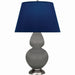 Matte Smokey Taupe Glazed Ceramic Double Gourd Table Lamp With Navy Fabric Shade with Gray Lining - Our Double Gourd collection features a simple but gracefully curving silhouette. Available in a wide array of vibrant colors and several different base finishes.