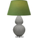Matte Smokey Taupe Glazed Ceramic With Lucite Base Double Gourd Table Lamp With Tea Green Fabric Shade With Taupe Lining - Our Double Gourd collection features a simple but gracefully curving silhouette. Available in a wide array of vibrant colors and several different base finishes.