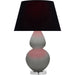 Matte Smokey Taupe Glazed Ceramic With Lucite Base Double Gourd Table Lamp With Ink Black Fabric Shade with Rose Red Lining - Our Double Gourd collection features a simple but gracefully curving silhouette. Available in a wide array of vibrant colors and several different base finishes.