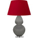 Matte Smokey Taupe Glazed Ceramic With Lucite Base Double Gourd Table Lamp With Rose Red Fabric Shade with Ink Lining - Our Double Gourd collection features a simple but gracefully curving silhouette. Available in a wide array of vibrant colors and several different base finishes.
