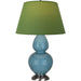 Steel Blue Glazed Ceramic With Antique Silver Finished Accents Double Gourd Table Lamp With Tea Green Fabric Shade with Taupe Lining - Our Double Gourd collection features a simple but gracefully curving silhouette. Available in a wide array of vibrant colors and several different base finishes.
