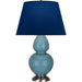 Steel Blue Glazed Ceramic With Antique Silver Finished Accents Double Gourd Table Lamp With Navy Fabric Shade with Gray Lining Shade - Our Double Gourd collection features a simple but gracefully curving silhouette. Available in a wide array of vibrant colors and several different base finishes.