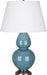 Steel Blue Glazed Ceramic With Antique Silver Finished Accents Double Gourd Table Lamp With Pearl Dupioni Fabric Shade - Our Double Gourd collection features a simple but gracefully curving silhouette. Available in a wide array of vibrant colors and several different base finishes.