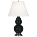 Obsidian Glazed Ceramic With Antique Silver Finished Accents Small Double Gourd Accent Lamp With Pearl Dupioni Fabric Shade - Our Double Gourd collection features a simple but gracefully curving silhouette. Available in a wide array of vibrant colors and several different base finishes.