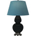 Obsidian Glazed Ceramic With Antique Silver Finished Accents Double Gourd Table Lamp With Bright Blue Fabric Shade with Gray Lining - Our Double Gourd collection features a simple but gracefully curving silhouette. Available in a wide array of vibrant colors and several different base finishes.