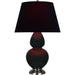 Obsidian Glazed Ceramic With Antique Silver Finished Accents Double Gourd Table Lamp With Ink Fabric Shade with Rose Red Lining - Our Double Gourd collection features a simple but gracefully curving silhouette. Available in a wide array of vibrant colors and several different base finishes.