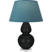 Obsidian Glazed Ceramic With Lucite Base Double Gourd Table Lamp With Bright Blue Fabric Shade with Gray Lining - Our Double Gourd collection features a simple but gracefully curving silhouette. Available in a wide array of vibrant colors and several different base finishes.