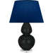 Obsidian Glazed Ceramic With Lucite Base Double Gourd Table Lamp With Navy Fabric Shade with Gray Lining - Our Double Gourd collection features a simple but gracefully curving silhouette. Available in a wide array of vibrant colors and several different base finishes.