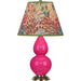 Razzle Rose Glazed Ceramic With Antique Natural Brass Finished Accents Small Double Gourd Accent Lamp With Fall Floral Fabric Shade - Our Double Gourd collection features a simple but gracefully curving silhouette. Available in a wide array of vibrant colors and several different base finishes.