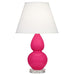 Razzle Rose Glazed Ceramic With Lucite Base Small Double Gourd Accent Lamp With Pearl Dupioni Fabric Shade - Our Double Gourd collection features a simple but gracefully curving silhouette. Available in a wide array of vibrant colors and several different base finishes.
