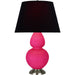Razzle Rose Glazed Ceramic With Antique Silver Finished Accents Double Gourd Table Lamp With Ink Fabric Shade with Rose Red Lining - Our Double Gourd collection features a simple but gracefully curving silhouette. Available in a wide array of vibrant colors and several different base finishes.