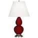 Sangria Glazed Ceramic With Antique Silver Finished Accents Small Double Gourd Accent Lamp With Pearl Dupioni Fabric Shade - Our Double Gourd collection features a simple but gracefully curving silhouette. Available in a wide array of vibrant colors and several different base finishes.