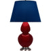 Sangria Glazed Ceramic With Antique Silver Finished Accents Double Gourd Table Lamp With Navy Fabric Shade with Gray Lining - Our Double Gourd collection features a simple but gracefully curving silhouette. Available in a wide array of vibrant colors and several different base finishes.