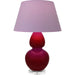 Sangria Glazed Ceramic With Lucite Base Double Gourd Table Lamp With Lavender Fabric Shade with Plum Lining - Our Double Gourd collection features a simple but gracefully curving silhouette. Available in a wide array of vibrant colors and several different base finishes.
