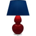 Sangria Glazed Ceramic With Lucite Base Double Gourd Table Lamp With Navy Fabric Shade with Gray Lining - Our Double Gourd collection features a simple but gracefully curving silhouette. Available in a wide array of vibrant colors and several different base finishes.
