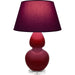 Sangria Glazed Ceramic With Lucite Base Double Gourd Table Lamp With Plum Fabric Shade with Lavender Lining - Our Double Gourd collection features a simple but gracefully curving silhouette. Available in a wide array of vibrant colors and several different base finishes.