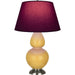 Sunset Yellow Glazed Ceramic With Antique Silver Finished Accents Double Gourd Table Lamp With Plum Fabric Shade with Lavender Lining - Our Double Gourd collection features a simple but gracefully curving silhouette. Available in a wide array of vibrant colors and several different base finishes.