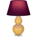 Sunset Glazed Ceramic With Lucite Base Double Gourd Table Lamp With Plum Fabric Shade with Lavender Lining - Our Double Gourd collection features a simple but gracefully curving silhouette. Available in a wide array of vibrant colors and several different base finishes.