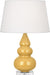 Our Triple Gourd collection features a simple but gracefully curving silhouette. Available in a wide array of vibrant colors and several different base finishes. - Sunset Yellow Glazed Ceramic With Lucite Base Small Triple Gourd Accent Lamp With Pearl Dupioni Fabric Shade