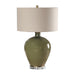 This Ceramic Base Is Finished In A Distressed Emerald Green Glaze, Accented With Antique Brass Plated Details And A Crystal Foot. The Round Hardback Drum Shade Is A Light Beige Linen Fabric With Natural Slubbing. Due To The Nature Of Fired Glazes On Ceramic Lamps, Finishes Will Vary Slightly.