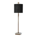 Sleek, Modern Lines Complete This Sophisticated Design Featuring A Delicate Iron Base Finished In A Plated Antique Brass, Accented With A Thick Crystal Slab And A Heavy Disk Finial. A Round Hardback Drum Shade In A Black Linen Fabric Completes This Versatile Piece.