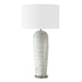 Featuring A Timeless White Ceramic Base Combined With Bands Of Melting Smoky Blue Glaze. This Piece Is Elegantly Anchored By A Thick Crystal Foot And Complemented With Brushed Plated Nickel Details. A Tapered Round Hardback Shade Covered In A White Linen Fabric. Due To The Nature Of Fired Glazes On Ceramic Lamps, Finishes Will Vary Slightly.