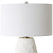 The Vida Table Lamp Base Features A Ceramic Base With A Uniquely Textured Surface And Soft, Flowing Lines. Finished In A Chalk White Glaze And Accented With Plated Brushed Brass Accents And Matching Textured Finial. The Large Round Drum Hardback Shade Is Made In A Casual White Linen Fabric.