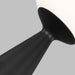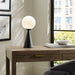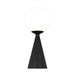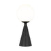 The Galassia one light table lamp by AERIN in midnight black is originally inspired by kinetic sculpture, the Galassia Table Lamp perfectly balances a glass globe atop a smooth, conical base, giving it a contemporary look. The white glass casts a soft, welcoming glow over a space. This versatile piece adds an artistic touch to a desk or side table