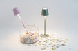 LED light with polycarbonate diffuser Offered in choice of 14 colors Full range touch dimming Color temperature selection function -2200K,2700K or 3000K Battery lasts about 7-8 hours at full power Charging time is 3-4 hours Includes contact charging base and 120V USB plug adaptor (plug not included) Rechargeable and replaceable lithium-Ion battery pack lasts approximately 400 charging cycles. Order Replacement Battery Packs from Zafferano America. Suitable for indoor and outdoor(powder-coated finishes only) use 1.8W LED 100-240V - 142 lm - 2200 / 2700 / 3000K CRI > 80 50-60Hz 5Vdc max 1A 2.8 x 2.8 x 10.8 inches IP65
