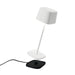 Battery-operated and rechargeable portable table lamp. The lamp features dimming touch control and dimmer memory function, which adjusts the light level and memorizes the dimming steps every time it is switched on. The light level will correspond to that which was previously set. It also has 3-CCT color temperature selection for 2200K (candle light), 2700K (warm white), and 3000K (cool white). The integrated LED module is designed and engineered to produce controlled downlight Features Portable LED light Induction charging base included About 9 hours of illumination per charge Touch-dimming with memory of most recent setting Suitable for indoor or outdoor use Charging time about 6 hours Specifications 144-150 lumens, LED/CRI>,80/120 volt/2.2W 3 color temperature settings: 2200K / 2700K / 3000K 11.4in height x 3.9in wide at top and bottom IP20 (bodyIP65) rating protection Die-cast painted aluminum body Instructions To recharge your Ofelia table lamp, plug the provided charging base into an outlet and place the lamp on the base. The translucent top will glow red while charging and turn green once the charging cycle is complete. A full charge takes around 6 hours. The fully charged lamp may remain on the charging cradle without damaging the battery.