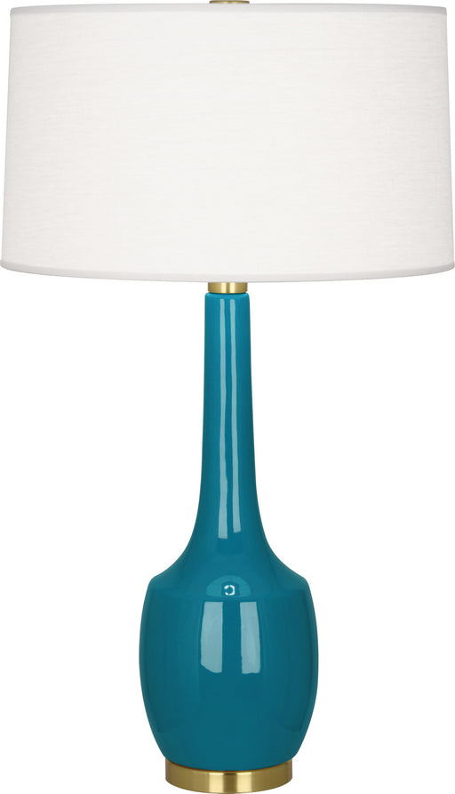 Peacock Glazed Ceramic Delilah Table Lamp With Oyster Linen Shade with Self-Fabric Top and Bottom Diffuser - Mixing bold and bright colors in a spa...